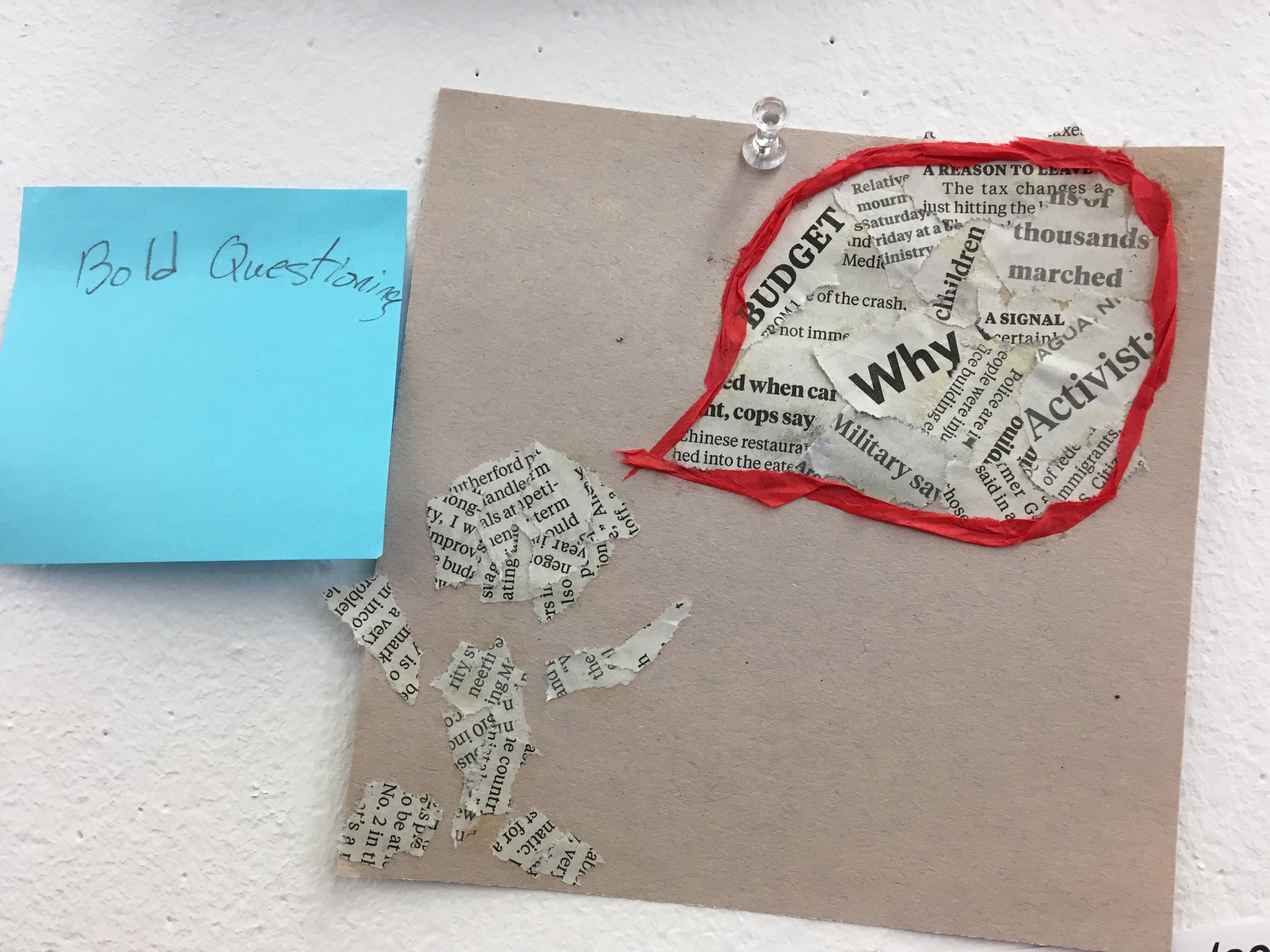 Like most of my other art projects, I had difficulty starting this one. The amount of choices was overwhelming and I couldn’t decide what I wanted to convey. I started by playing with materials. Newspaper pieces were easy to arrange and layer. I also enjoy the old, discolored look of the paper. While ripping, certain words stuck out to me like “budget,” “activist,” and “why,” so I ripped them out and started making a word pile. All of these words started to make me think about politics and the crazy amount of negativity we have to intake right now and it made me feel a disconnect between my body and my thoughts. I arranged the word pile in many different ways on a small square of beige paper until it took on the shape of a thought bubble. I then created a “person” out of unidentifiable newspaper rippings whose limbs and head were floating slightly away from the torso. I outlined the thought bubble in red to draw the eye to the importance and power thoughts can have.